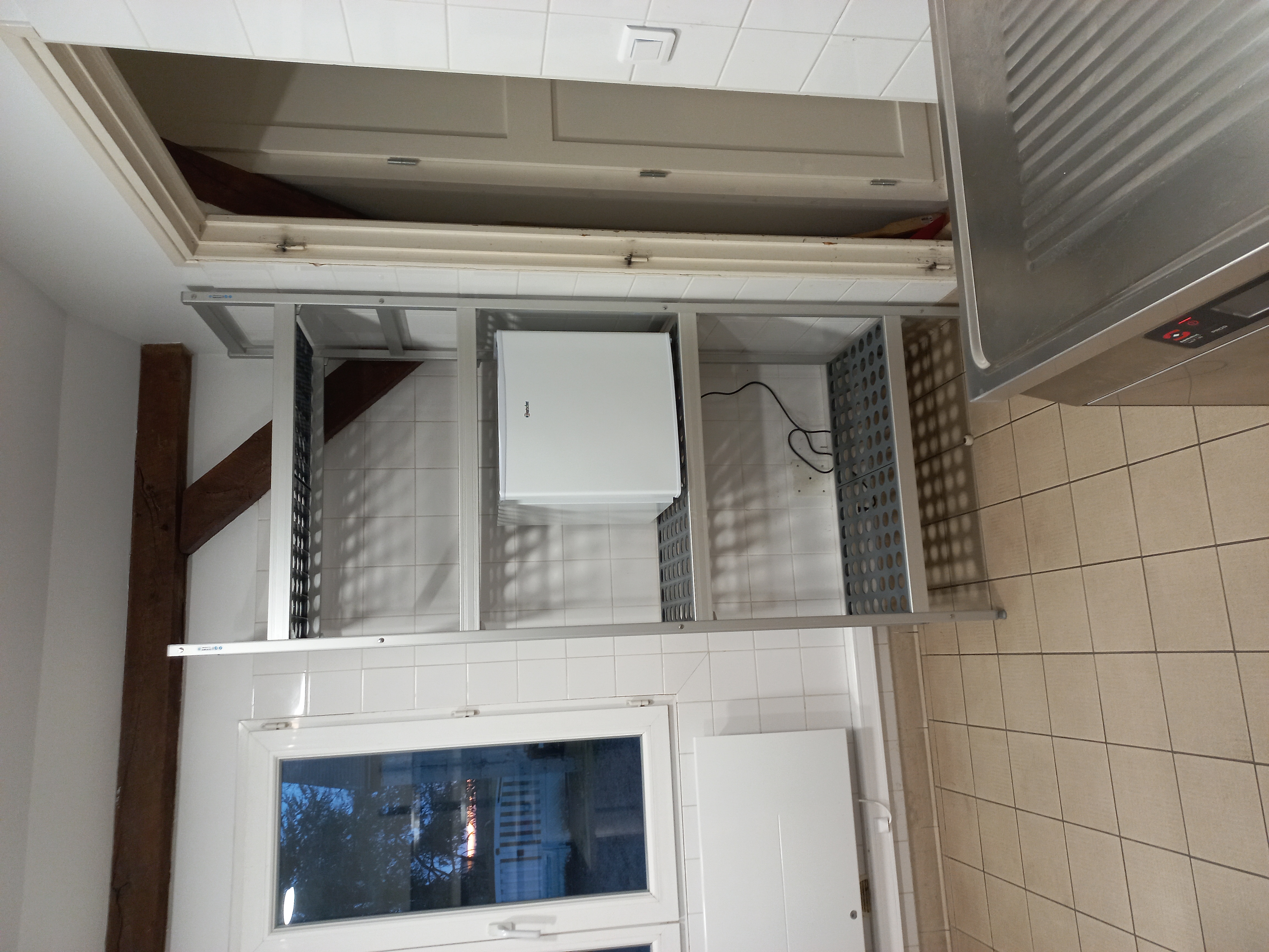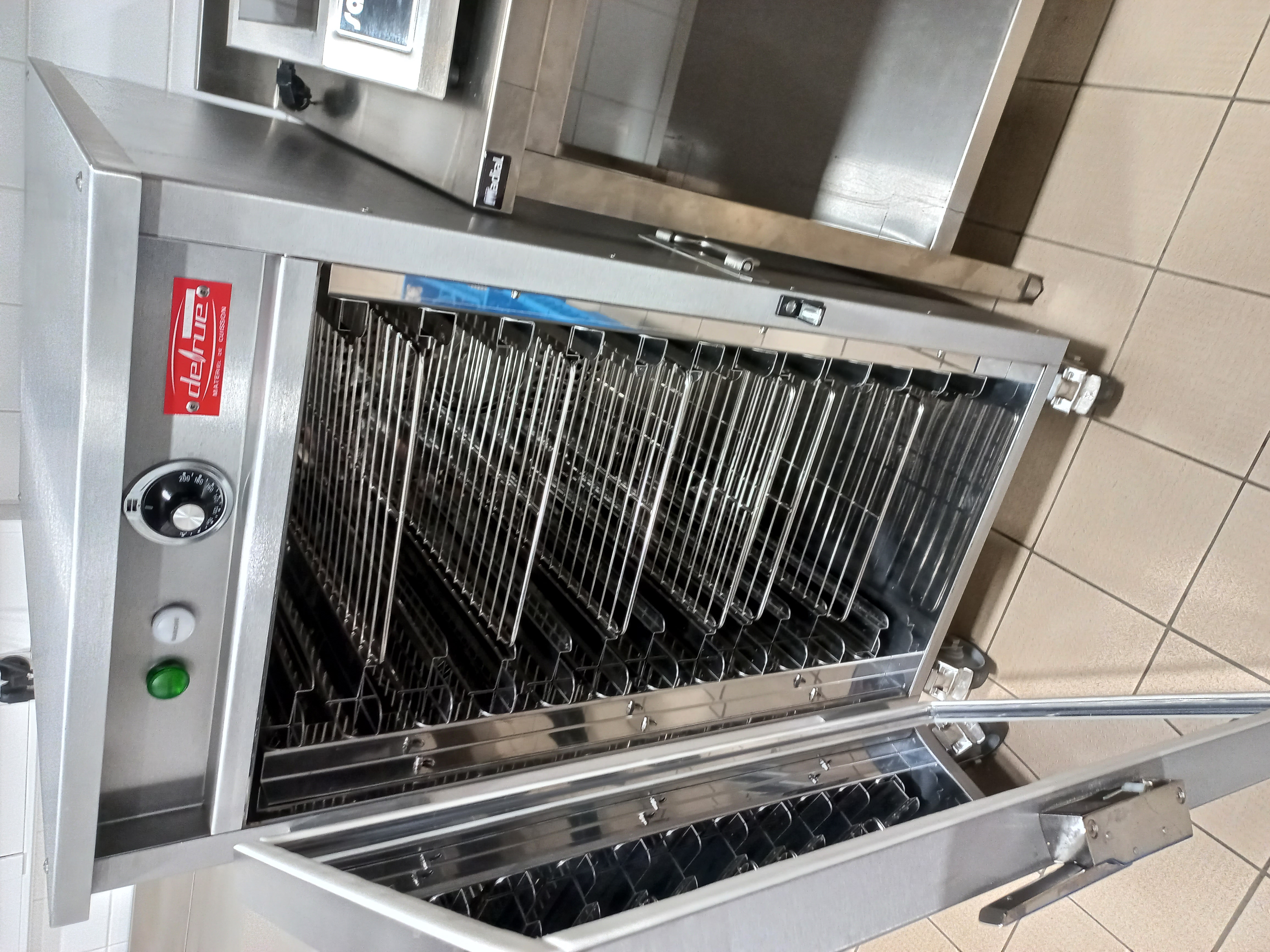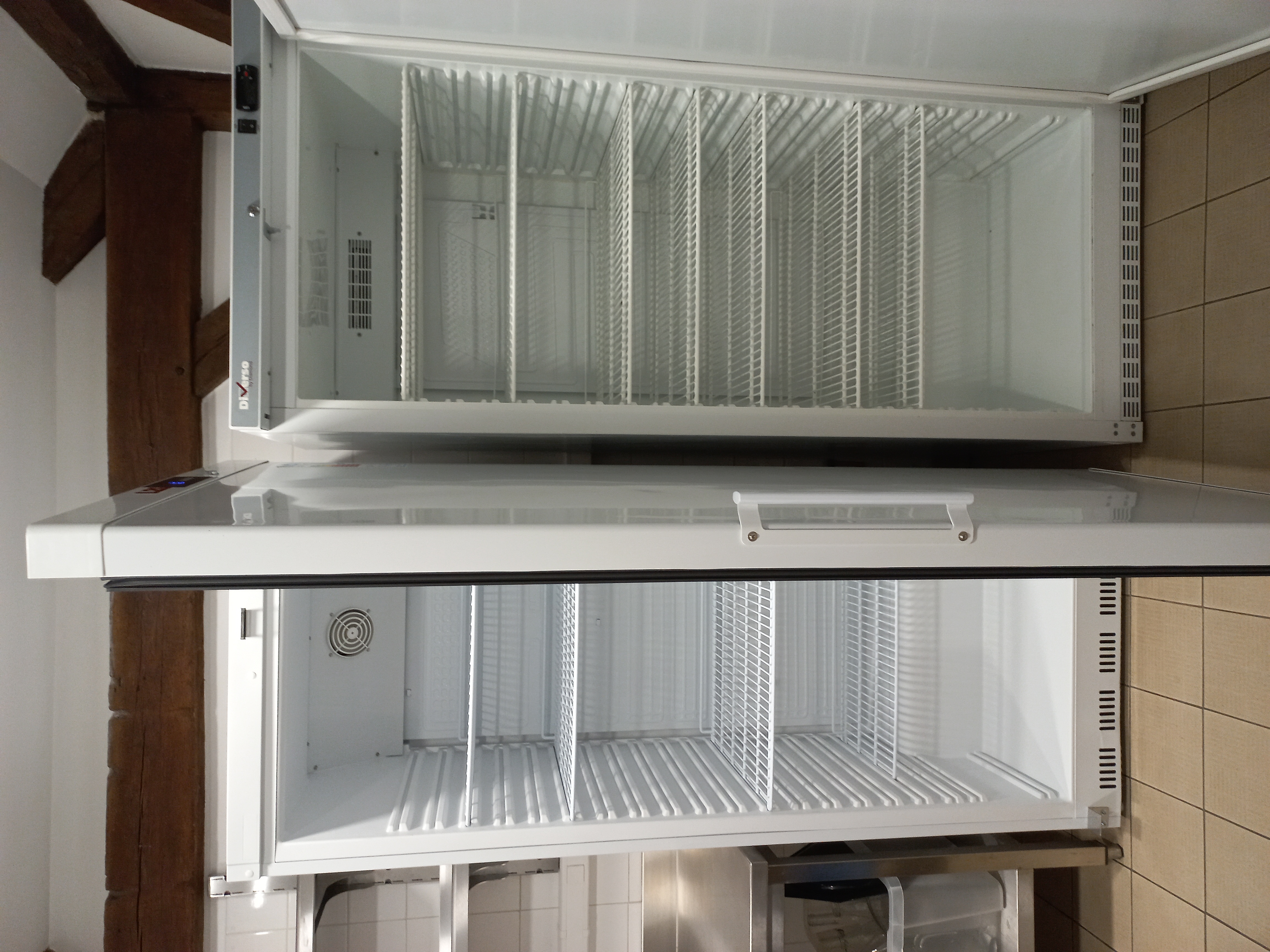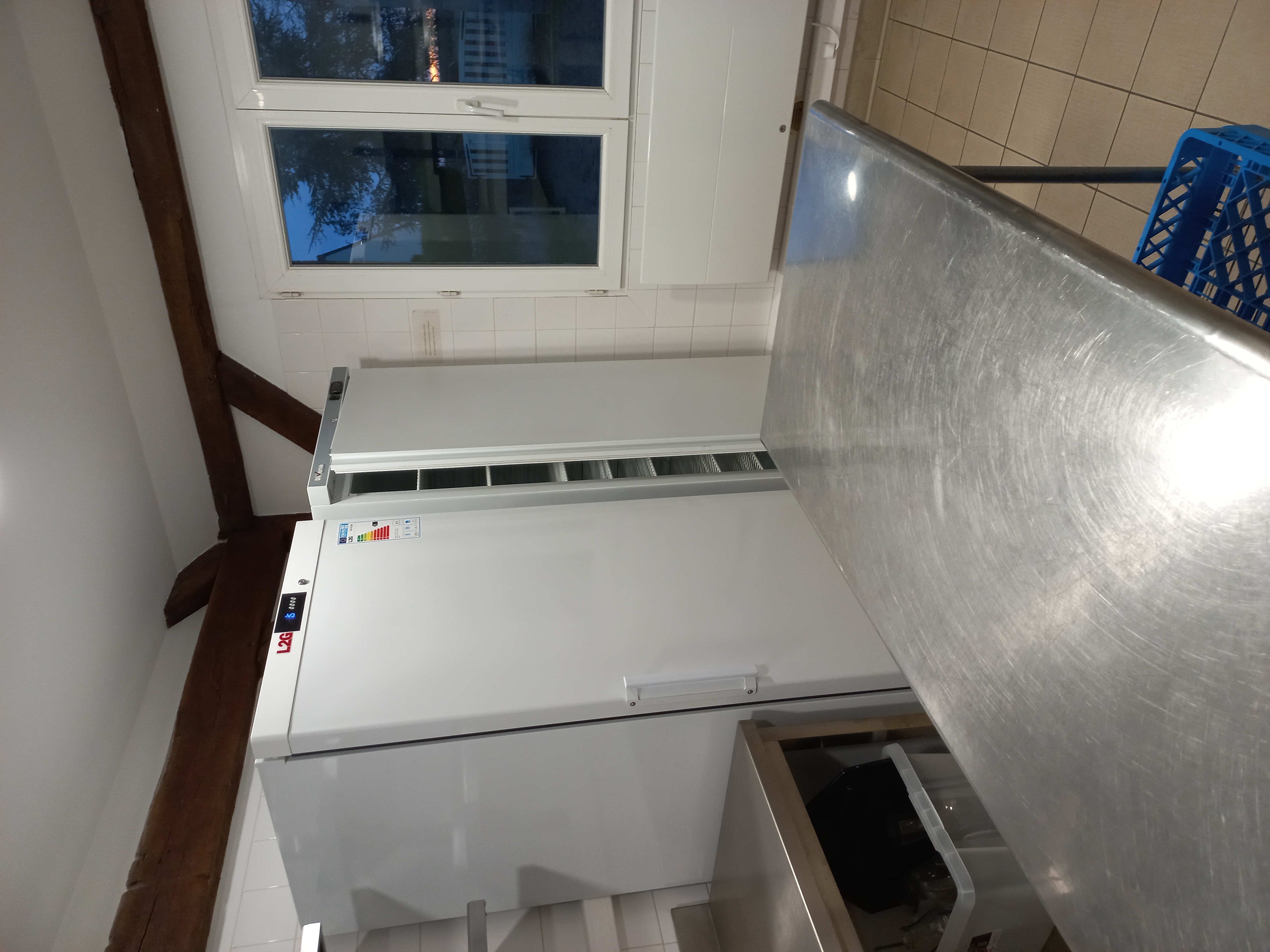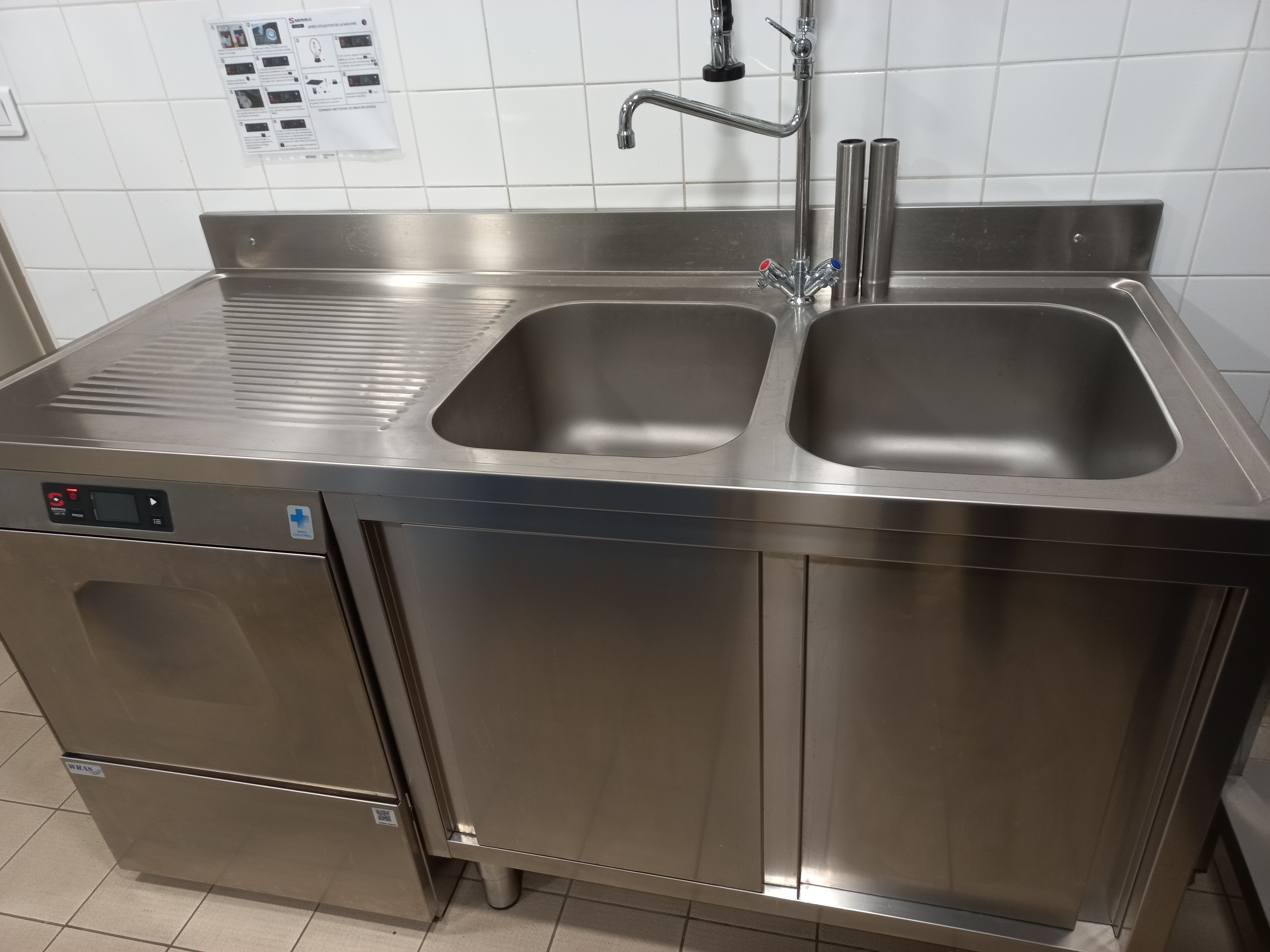 La cuisine comporte 2 réfrigérateurs, un mini congélateur, un lave-vaisselle minute, une étuve, une plaque induction, un four micro ondes et un double bac de plonge.